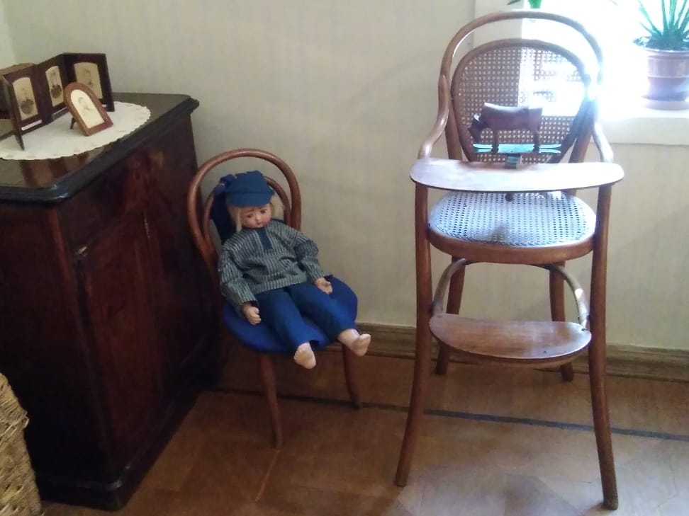 Στα δεξιά, κοντά στο παράθυρο, υπάρχει ένα γκρίζο μπαούλο (μέσα στο οποίο φύλαγαν παπούτσια και παγοπέδιλα), και ένας καθρέπτης με γκρίζα κορνίζα που κρέμεται στον τοίχο. Επιστολές, εφημερίδες, περιοδικά τοποθετούνταν στο τραπέζι κάτω από τον καθρέφτη. Μια λάμπα κηροζίνης βρίσκεται στα δεξιά της εισόδου.